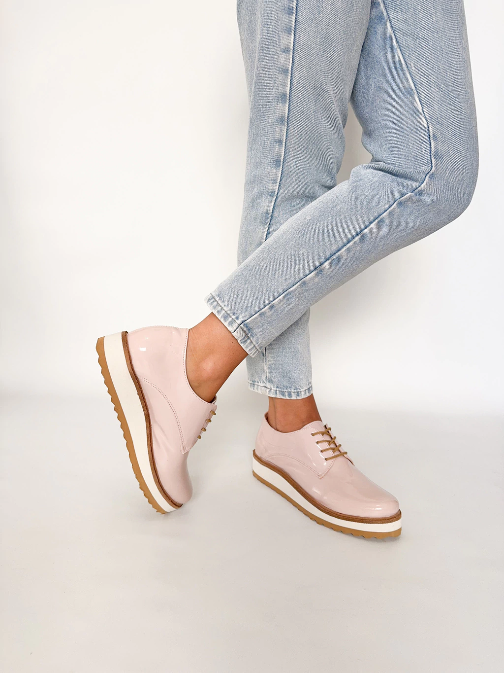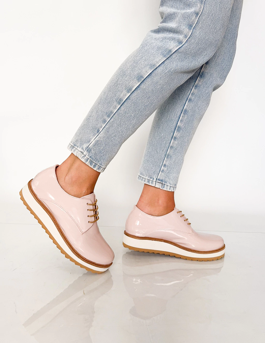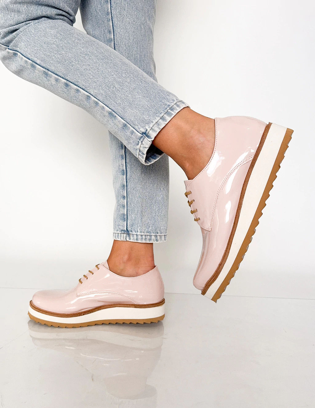 Mocasines acordonados de eco cuero acharolados.