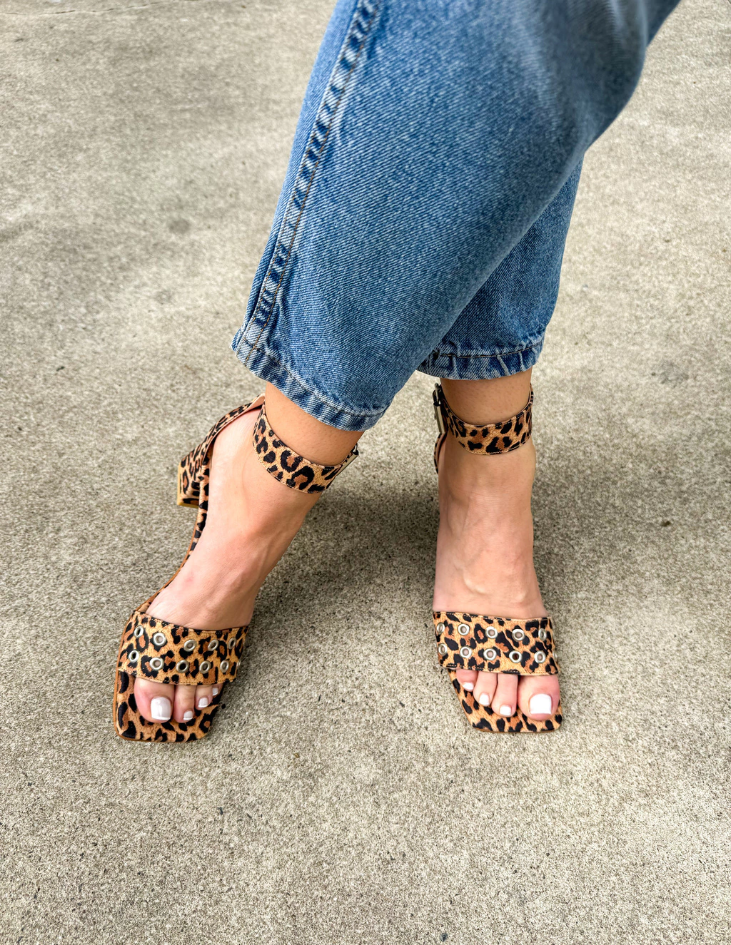 Sandalias de cuero vacuno con taco forrado en el mismo material.