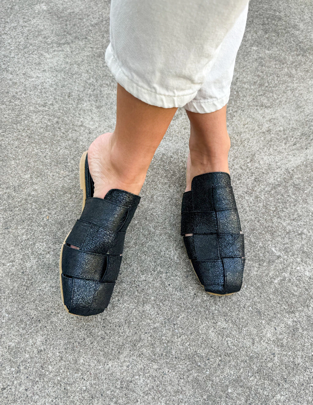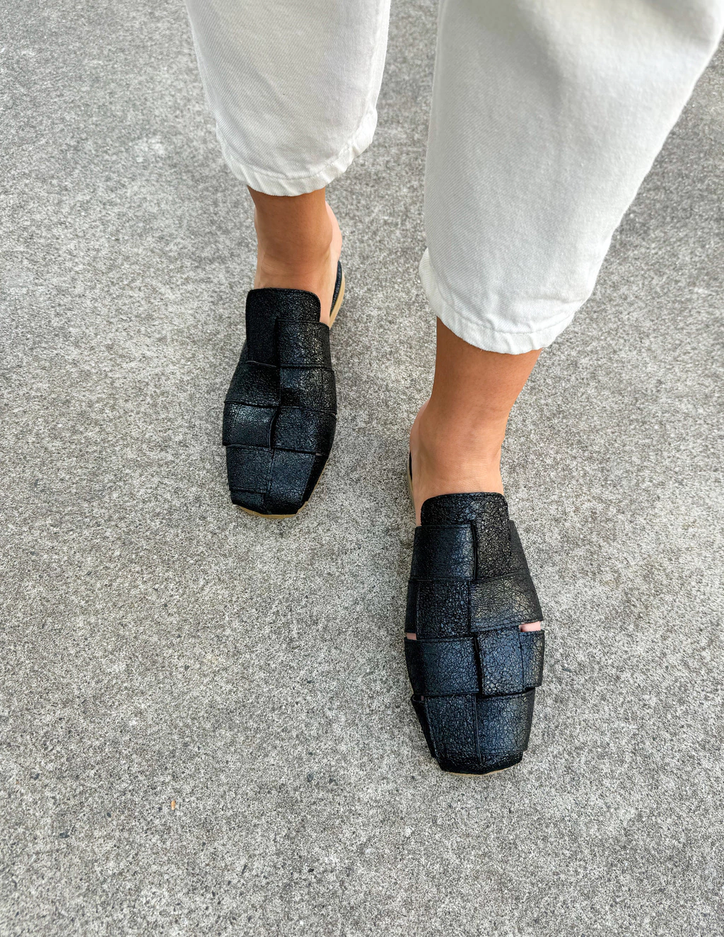 Zuecos de cuero vacuno brillosos.