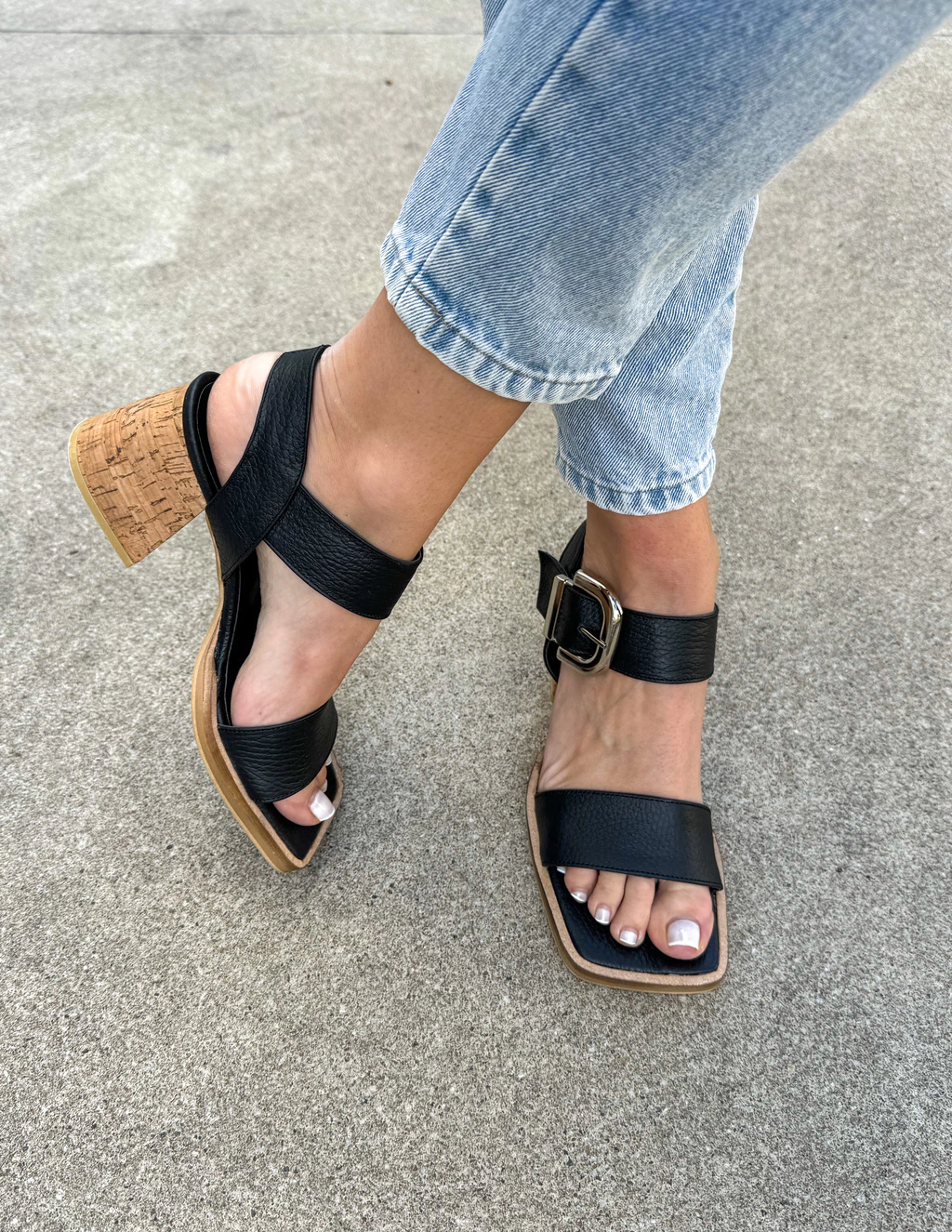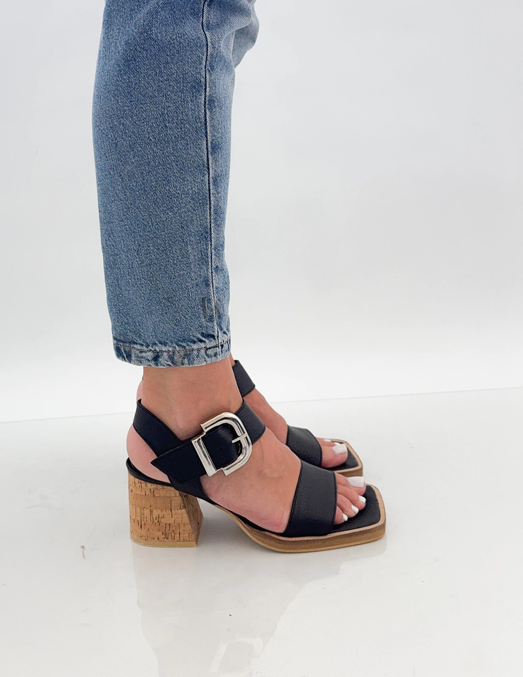Ajuste en el tobillo mediante hebilla metálica.
