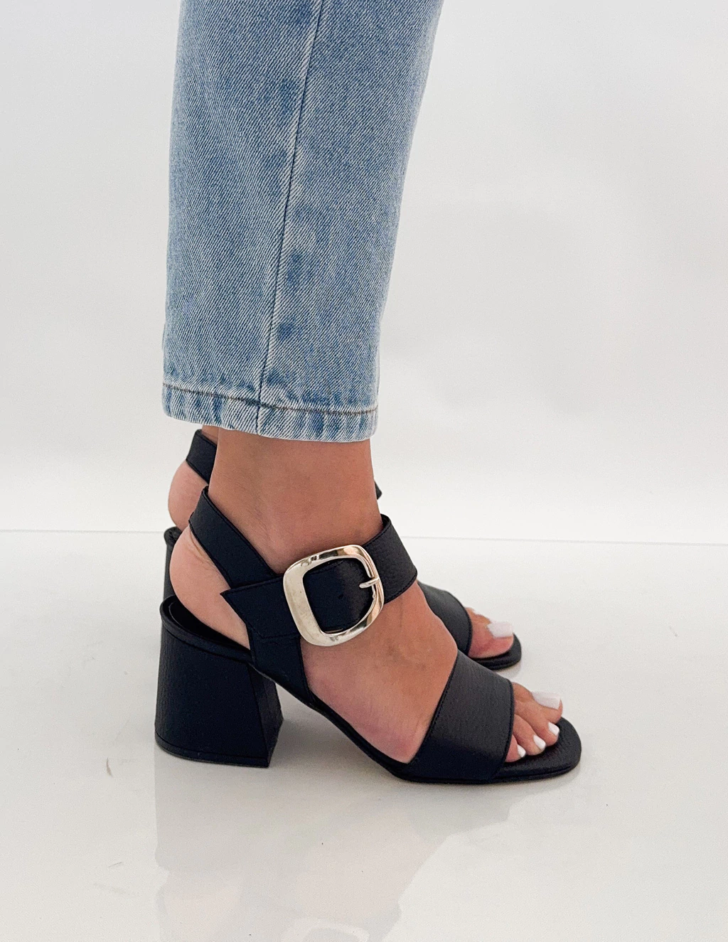 Sandalias de cuero vacuno con taco forrado en el mismo material.